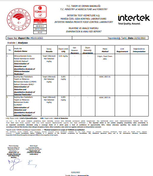 Polifenol Miktarı: 400 mg/kg