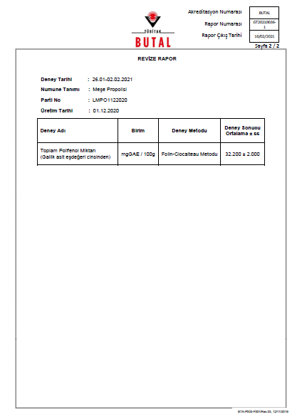 Burada seçilen propolis türü Meşe Propolisidir.Meşe Propolisi dünyada en yüksek polifenol seviyesine sahip propolis türlerinden birisidir.